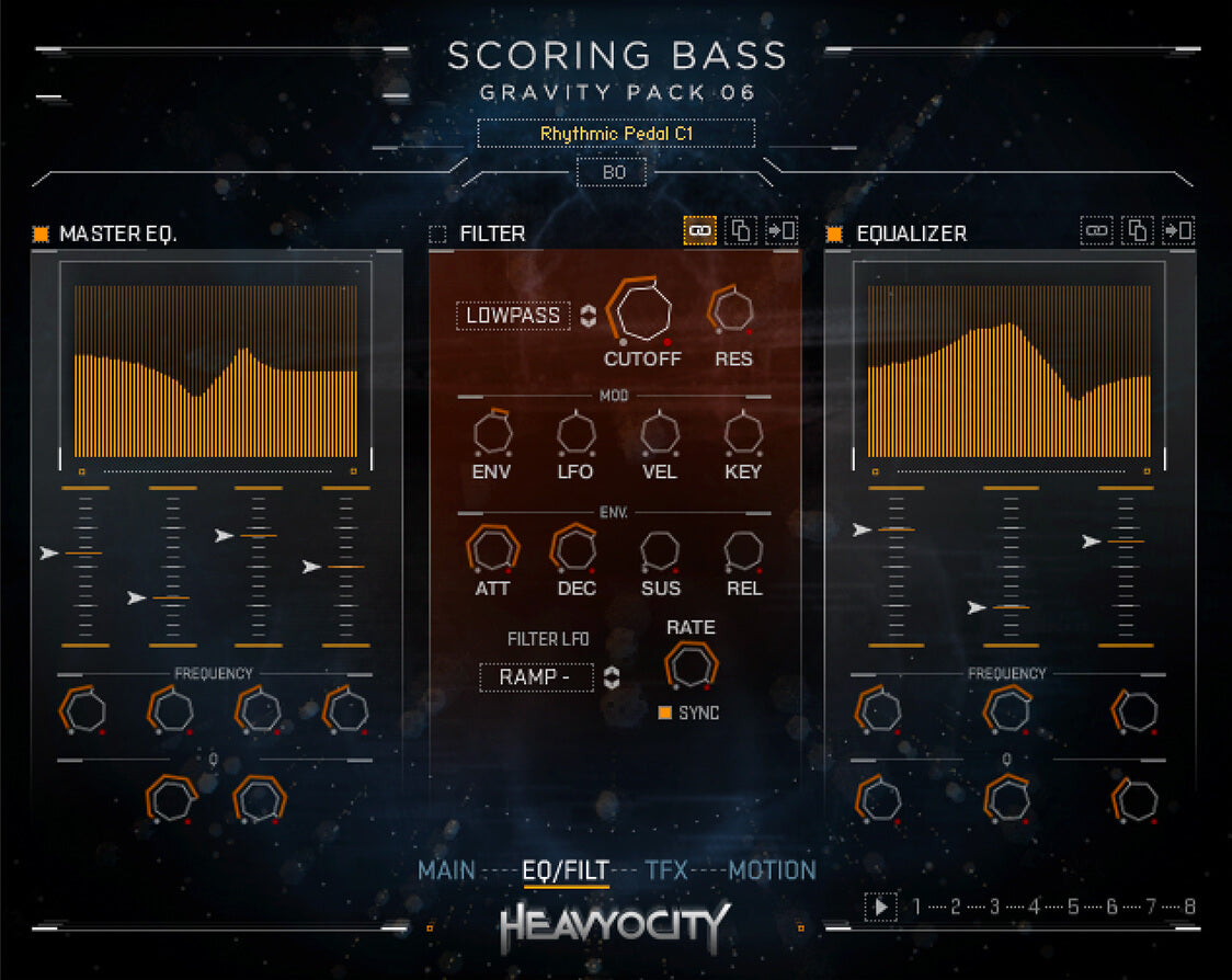 A deep well of low-end cinematic content—featuring 4 GB of pads, tempo-synced pulses & pedals, and multi-sampled playable instruments.