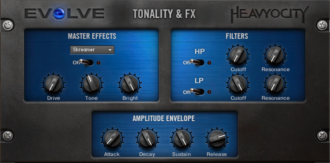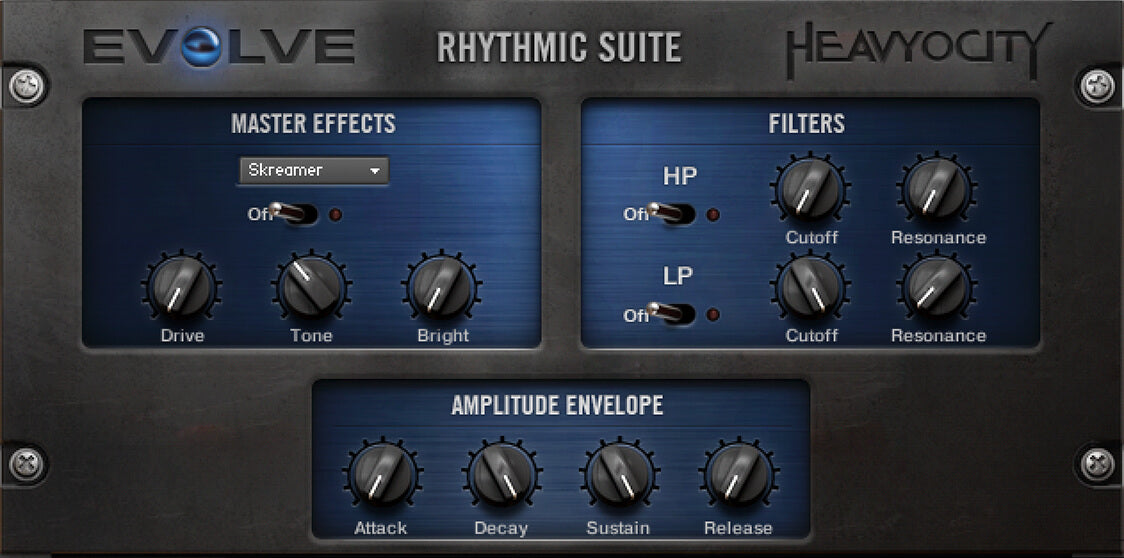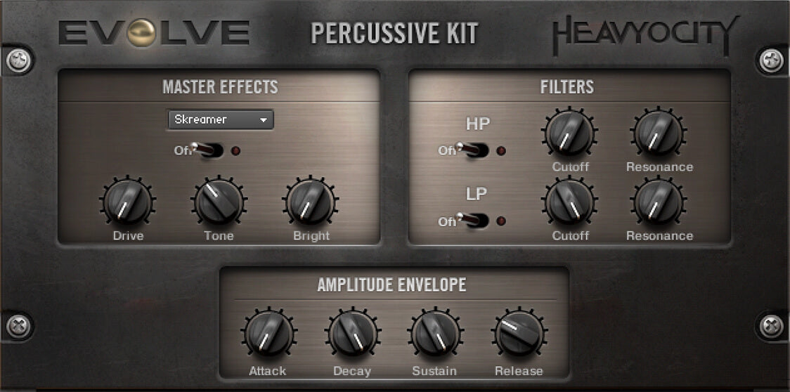 - Skreamer, Cabinet, LofiDelay, Reverb, ADSR, High Pass, and Low Pass control