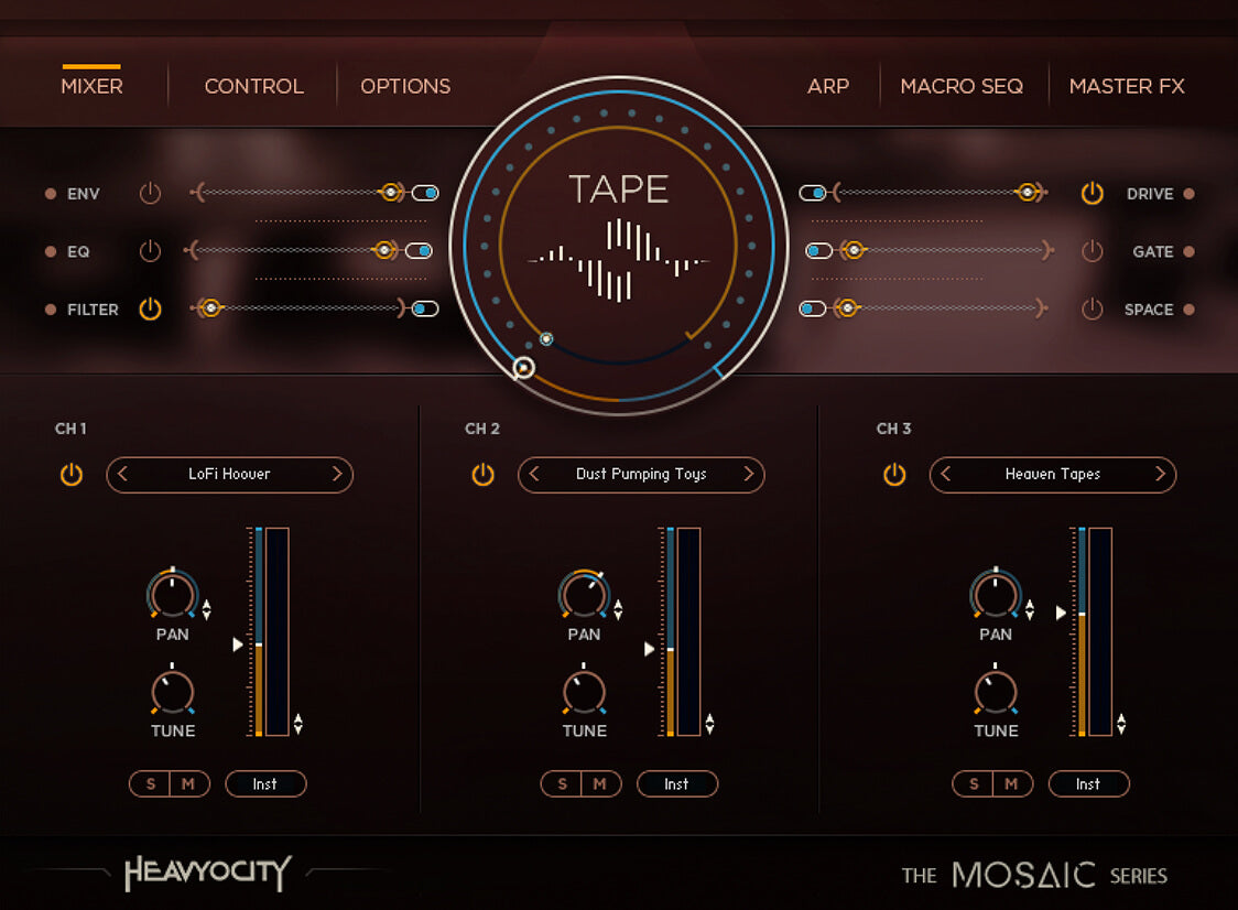 Heavyocity’s Mosaic Tape continues the mission of Mosaic, delivering a signature palette of VST sounds built entirely around what we find inspiring about the magic of aged analog tape.