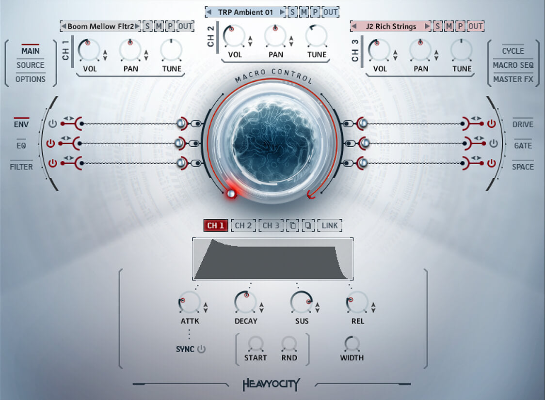 The award-winning NOVO engine inspires and enables true creativity for the modern composer. Use MACRO CONTROL to modulate and automate multiple parameters across each channel, or quickly create rhythmic pulses, swells, and granular-style pads with the acclaimed CYCLE feature.